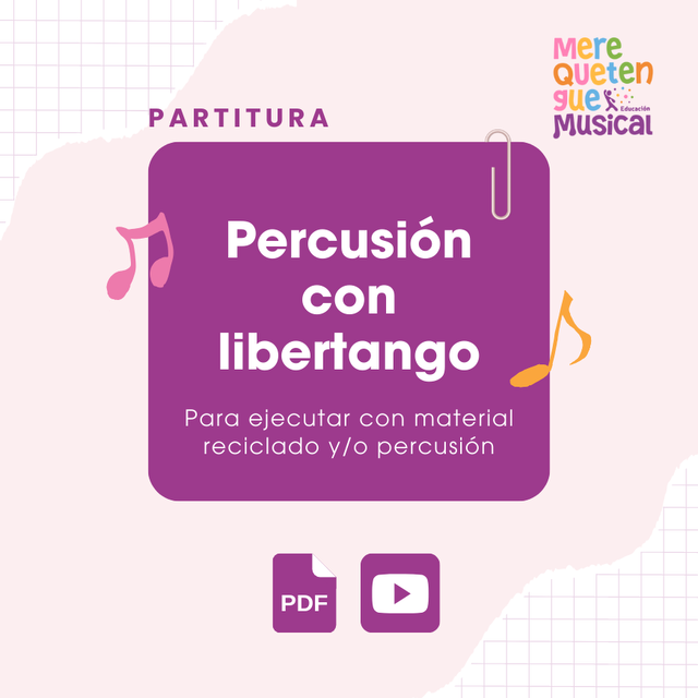Partitura de percusión con palos, tarros y lijas sobre el "Libertango" de Piazzolla. Una propuesta poderosa para nivel secundario.